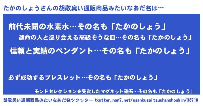 | 意味不明あだ名 | 『とにかく怪しいたかのしょう』 |