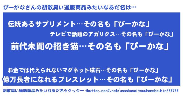 | ヘコむあだ名 | 『ぴーかな(小並感)』『ぴーお』 |