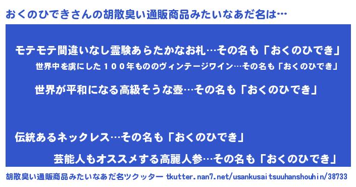 | 欧米人風あだ名 | 『トリンドルおくのひでき』 |