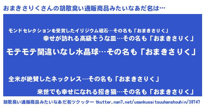 | 欧米人風あだ名 | 『マイケルおまきさりく』 |