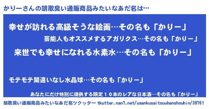 | ヘコむあだ名 | 『かりー(苦笑)』『なまこ酢』 |
