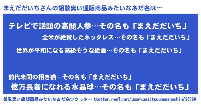 | 肩書あだ名 | 『まえだだいち総理大臣』 |