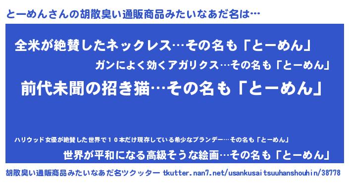 | 意味不明あだ名 | 『永久保存とーめん』『自称とーめん』 |