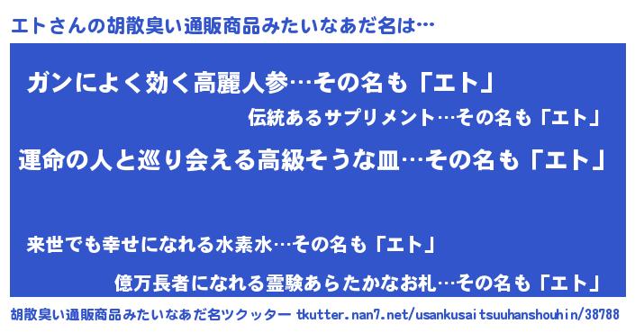 | ヘコむあだ名 | 『酢こんぶ』『エトにゅー』『エトを』 |