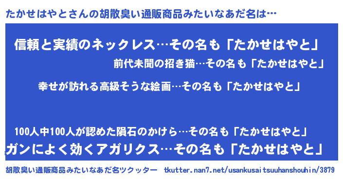 | 肩書あだ名 | 『たかせはやと総理大臣』 |