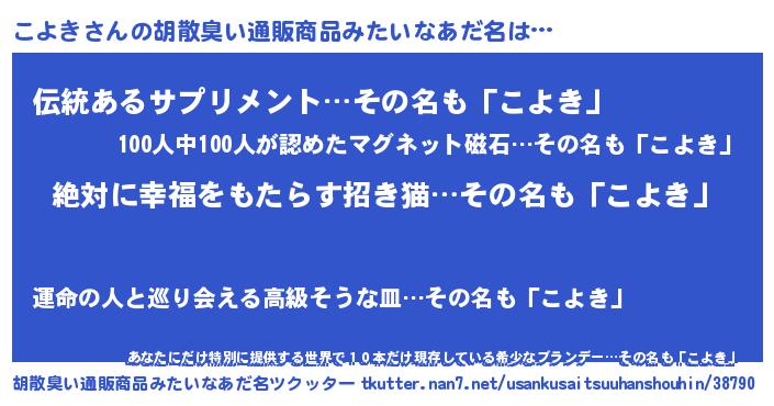 | 意味不明あだ名 | 『永久保存こよき』『ニラ科こよき属』 |