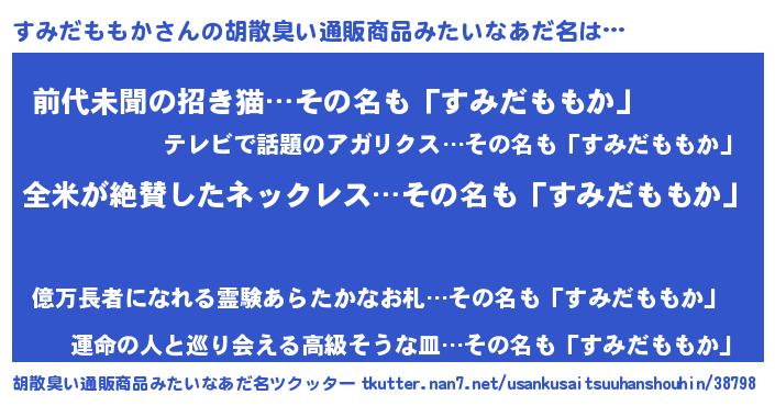 | ヘコむあだ名 | 『すみっ子』『すみだももか(遠い目)』 |