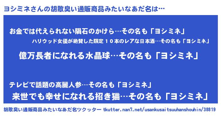 | 意味不明あだ名 | 『ペロリンヨシミネ』『永久保存ヨシミネ』 |
