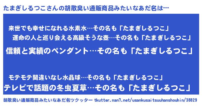 | ヘコむあだ名 | 『たまっちょ』『たまぎしるつこ(苦笑)』 |