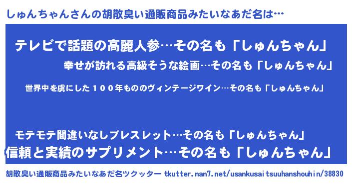 | 意味不明あだ名 | 『住所不定無職しゅんちゃん(9歳)』 |