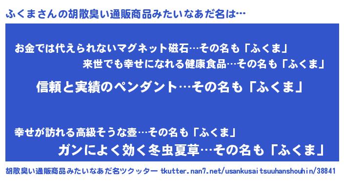 | 意味不明あだ名 | 『とにかく怪しいふくま』『自称ふくま』 |