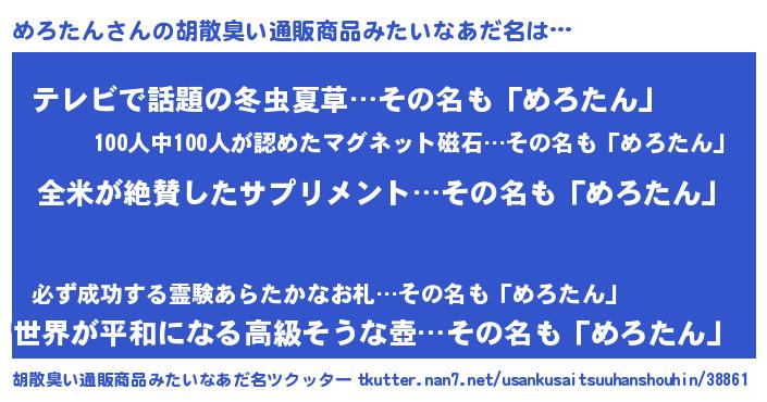 | 欧米人風あだ名 | 『ウサインめろたん』『ダニエルめろたん』 |
