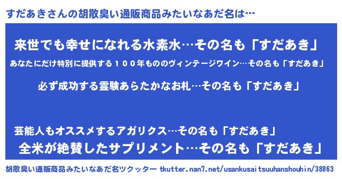| ヘコむあだ名 | 『すだっふぃ~』『すだあき(笑)』 |