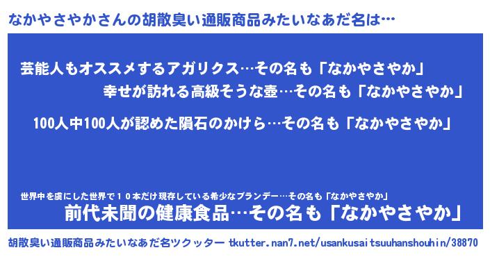| ヘコむあだ名 | 『なかやさやか(苦笑)』『酢こんぶ』 |