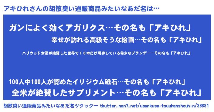 | ヒーロー風カッコイイあだ名 | 『仮面アキダー』『サイバー戦士アキヒレ』 |