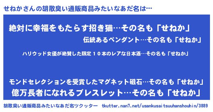 | 意味不明あだ名 | 『住所不定無職せねか(41歳)』 |
