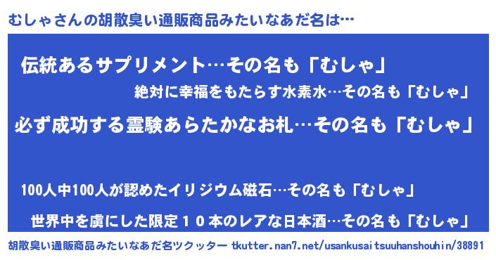 | 男性向けラノベタイトル風あだ名 | 『むしゃの憂鬱』『緋弾のムシャ』 |