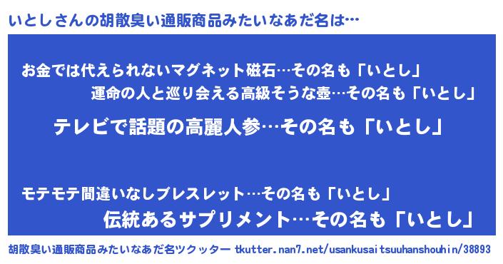 いとしさんの胡散臭い通販商品みたいなあだ名をツクッター!