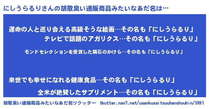 | ヒーロー風カッコイイあだ名 | 『天空の使者にしうらるり』 |