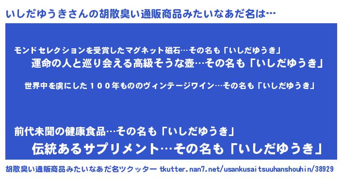 | 意味不明あだ名 | 『住所不定無職いしだゆうき(4歳)』 |