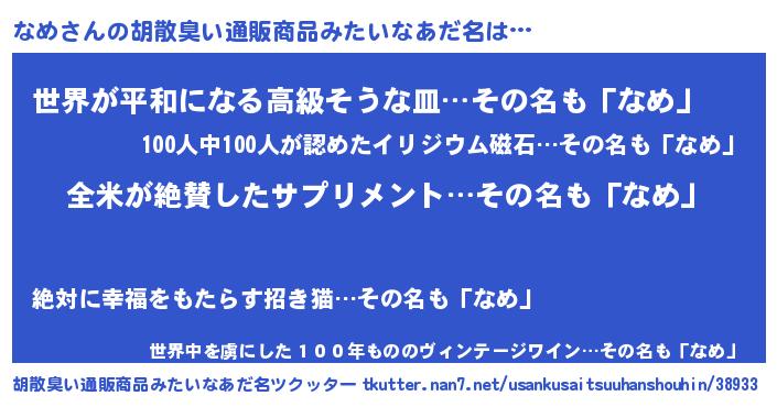 | 萌えアニメ | 主人公(なめ)のあだ名『 なめさん』 |