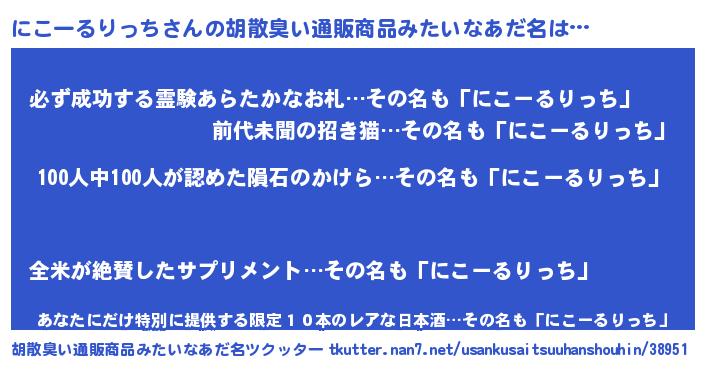 | ヘコむあだ名 | 『にこもー』『にこーるりっち(震え声)』 |
