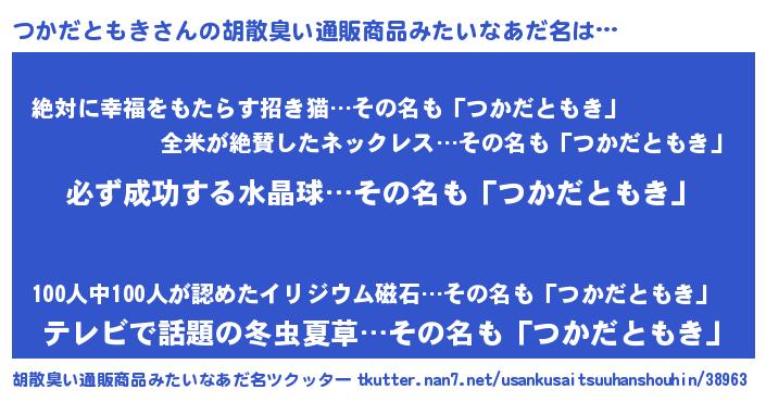 | ヘコむあだ名 | 『つかもー』『つかだともき(笑)』 |