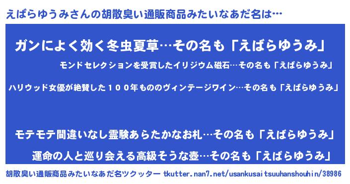 | 料理風あだ名 | 『えばらゆうみのカルパッチョ風』 |