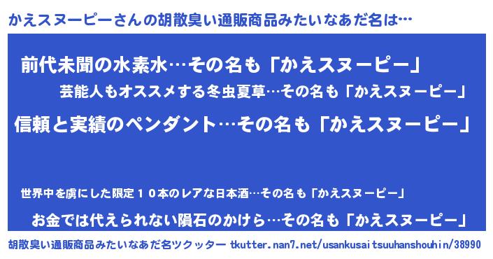 | ポケモン風あだ名 | 『ヒカエスヌーピー』『ゼニカエ』 |