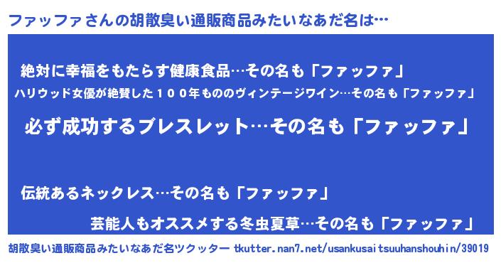 | ヘコむあだ名 | 『ファふぇ~』『ファッファ(苦笑)』 |