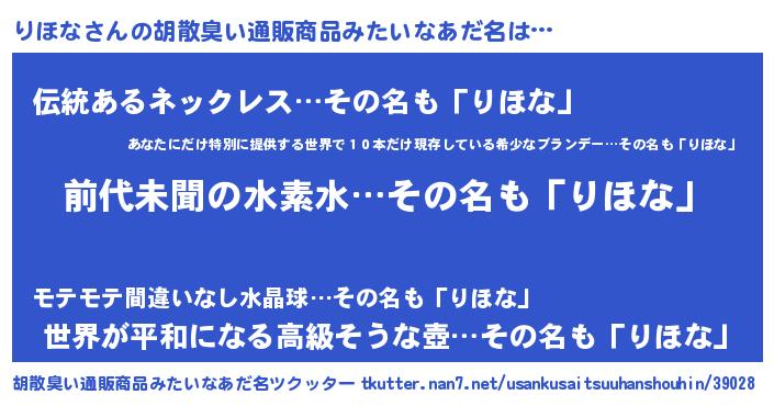 | 欧米人風あだ名 | 『ダルビッシュりほな』『ウサインりほな』 |