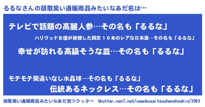 | 男性向けラノベタイトル風あだ名 | 『やはりるるなの青春ラブコメはまちがっている 』 |