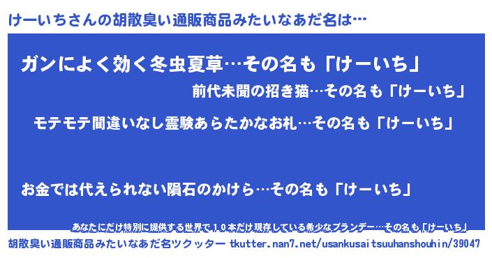 | 恥ずかしいあだ名 | 『プリティーけーいち』『けーちん』 |