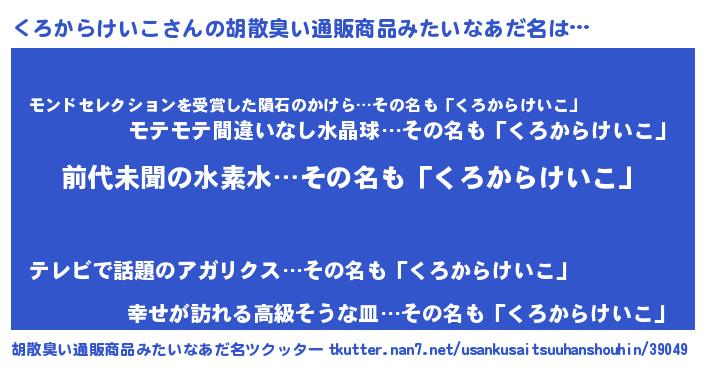 | 伝説のあだ名 | 『古文書に記された勇者くろからけいこ』 |