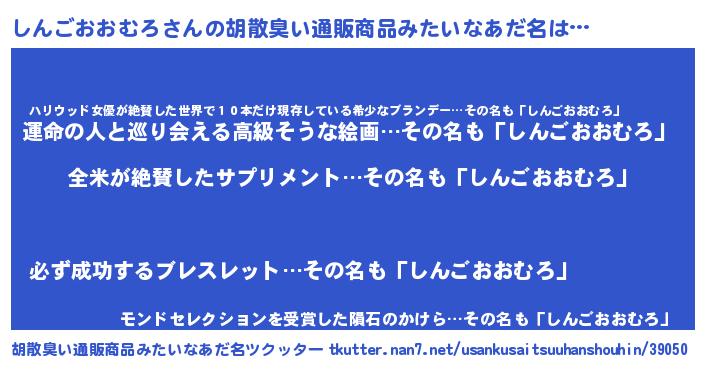 | 意味不明あだ名 | 『とにかく怪しいしんごおおむろ』 |