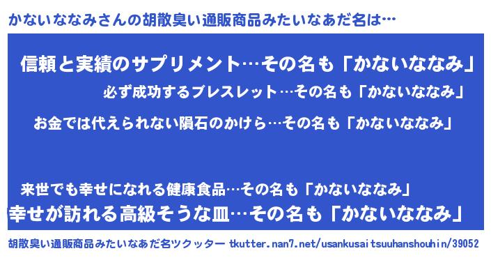 | ヘコむあだ名 | 『かなぷりん』『つくし』 |
