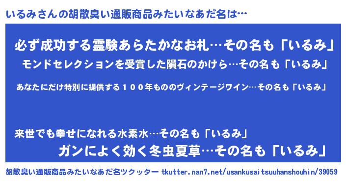 | 意味不明あだ名 | 『住所不定無職いるみ(12歳)』『自称いるみ』 |