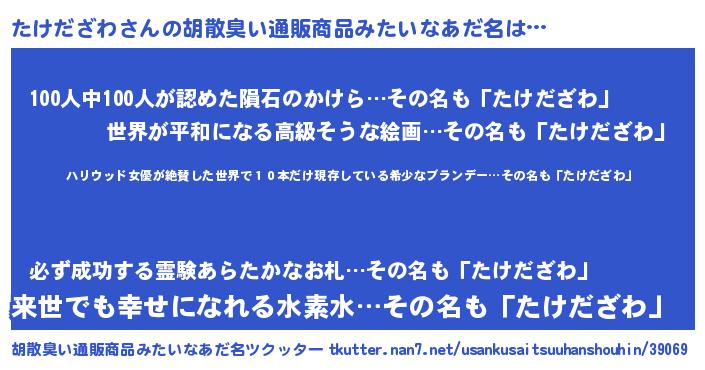 | 肩書あだ名 | 『たけだざわ上級大将』『たけだざわ教官』 |
