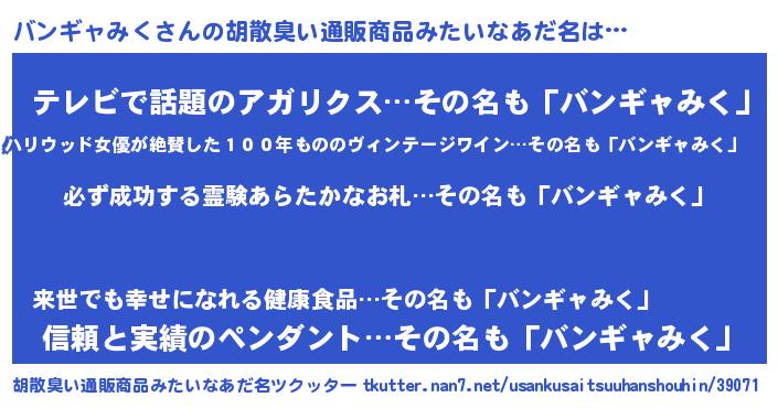 | 伝説のあだ名 | 『伝説のスナイパーバンギャみく』 |