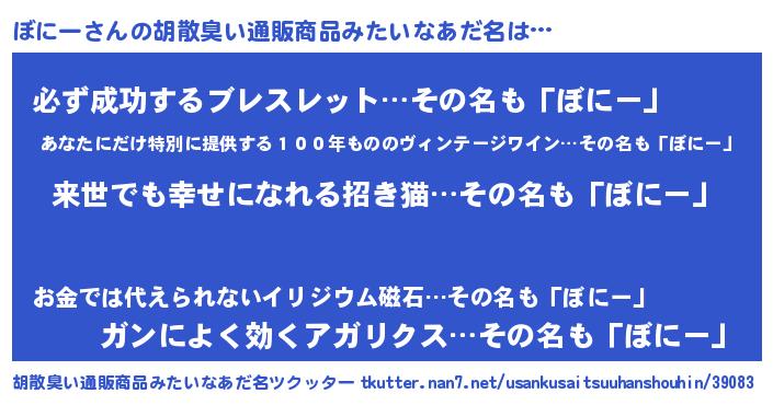 | 伝説のあだ名 | 『古より伝わる吟遊詩人ぼにー』 |