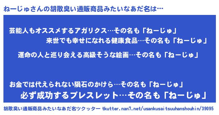 | 肩書あだ名 | 『ねーじゅ総理大臣』『ねーじゅ閣下』 |