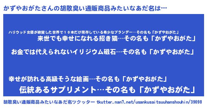 | ヘコむあだ名 | 『かず太郎』『かずやおがた(震え声)』 |