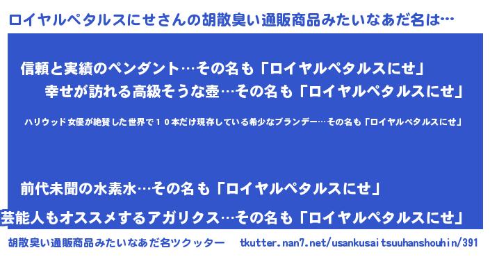 | 欧米人風あだ名 | 『ダレノガレロイヤルペタルスにせ』 |