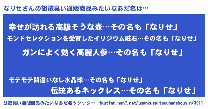 | 意味不明あだ名 | 『自称なりせ』『なりせフォーエバー』 |
