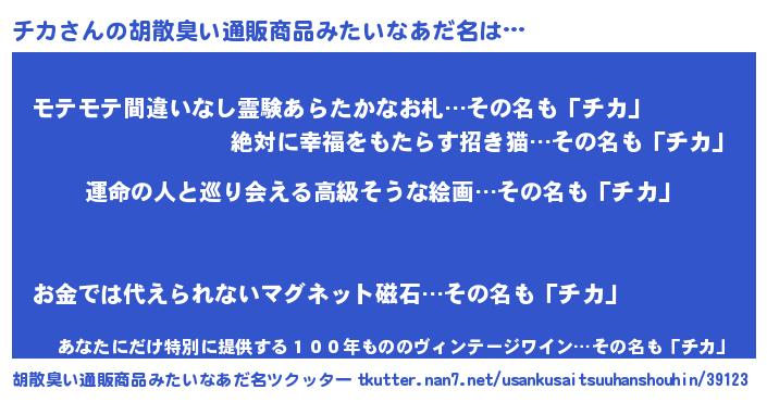 | ヘコむあだ名 | 『レバニラ』『チカもー』『チカ(笑)』 |