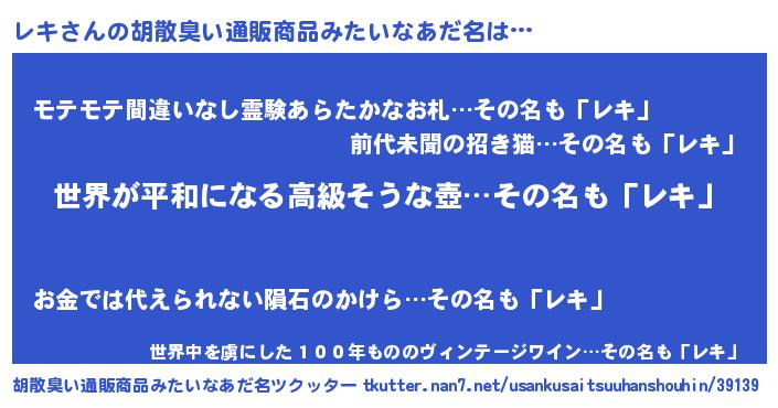 | ヘコむあだ名 | 『なまこ酢』『レキにゅー』『レキお』 |