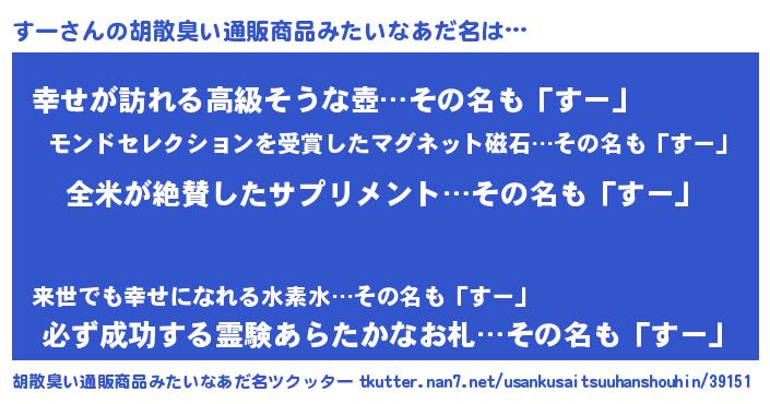 | ヘコむあだ名 | 『すー太郎』『つくし』 |