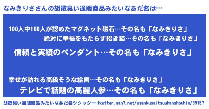 | ヘコむあだ名 | 『なみっちょ』『なみきりさ(笑)』 |