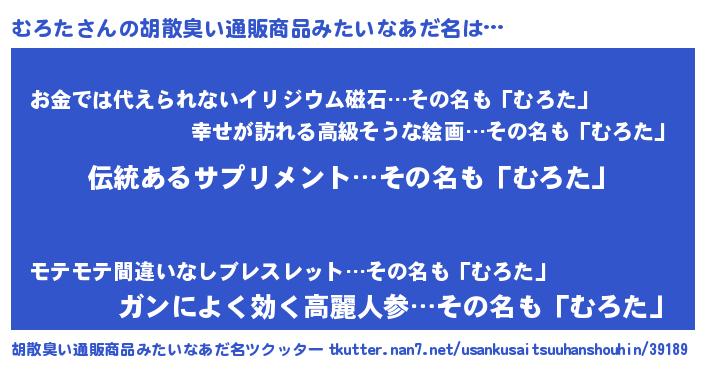 | 意味不明あだ名 | 『とにかく怪しいむろた』『自称むろた』 |