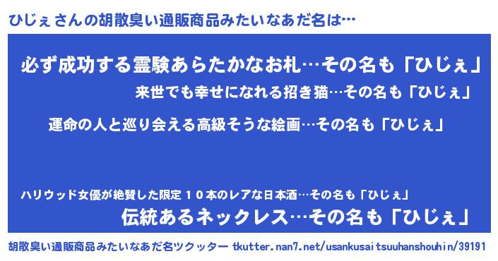 | ヘコむあだ名 | 『酢こんぶ』『ひじにゅー』 |